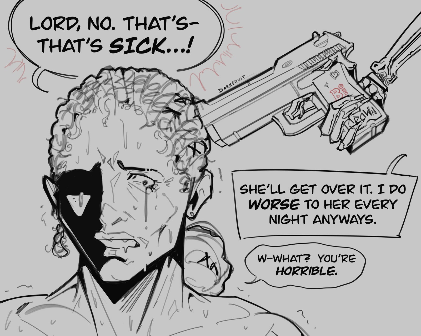 My comic work, a mix of personal and commissions. Click on the images to view them uncropped.