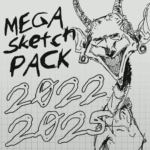 This MEGA fruity sketch pack features ~250 never before seen sketch pages, each with many many drawings on them, including: